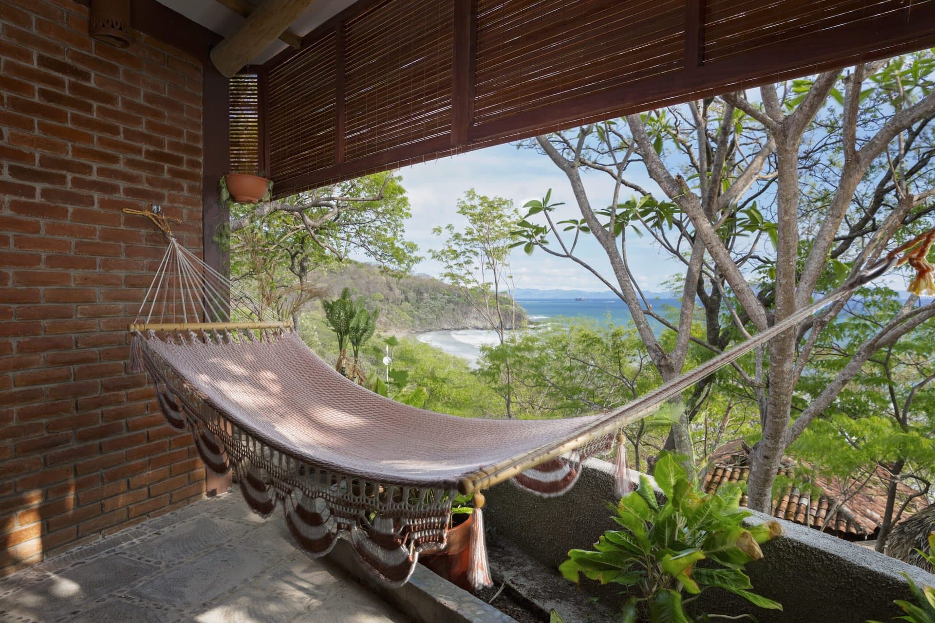 Highlights: a spacious outdoor bathroom and beautiful ocean views, private patio with hammock and couch